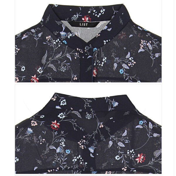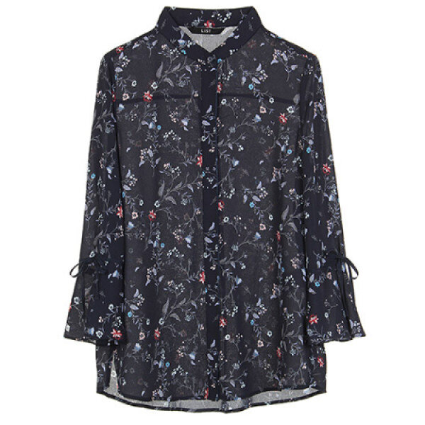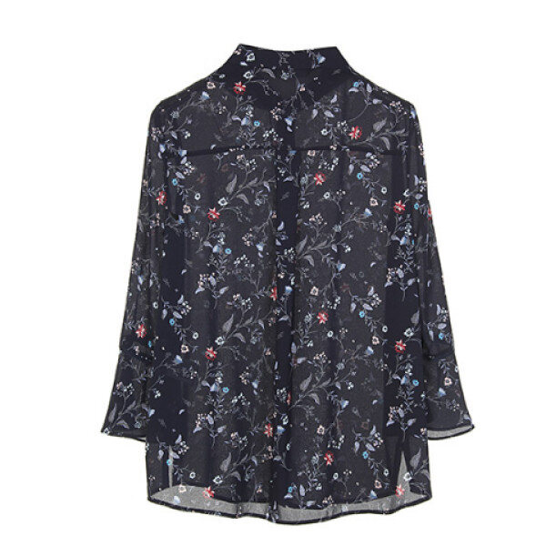 시폰 소재의 벨 슬리브 실루엣에 올오버 프로럴 프런트가 페미닌한 플루이드 블라우스입니다