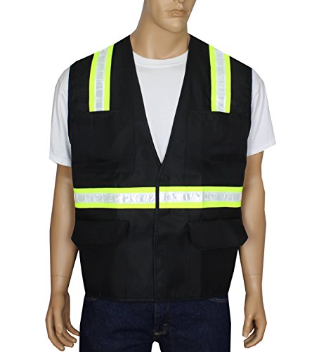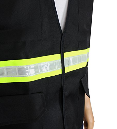 Safety Depot Safety Vest 6 Pockets with Pen Dividers Hook & Loop Closure Hi Vis Light Weight V6048-BK (Black, Medium)