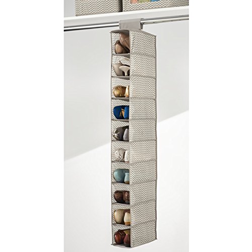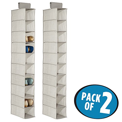 mDesign Fabric Hanging Closet Storage Organizer, for Shoes, Handbags, Clutches - Pack of 2, 10 Shelves, Taupe/Natural