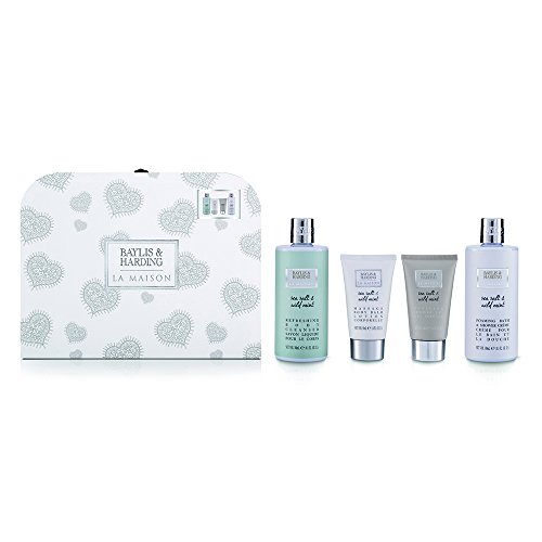 -. Feature : This Carry Case Gift Set includes four of Baylis & Harding's most popular pampering products / Contains Bath & Shower Crème, Body Cleanser, Shower Gel and Body Balm / Each refreshingly scented with Sea Salt & Wild Mint / Cute heart-patterned carry case in white and taupe to suit all tastes / Baylis & Harding's expertly crafted formulations use only the finest ingredients