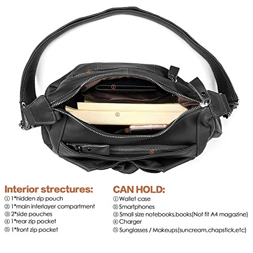 - ✔ [Multi Pocket Bag]: 1 front quick access pouch, 1 rear pouch, 2 side pouches, 1 main interlayer compartment(1 hidden zip pouch, 2 side pouches), can hold smartphones, ipad mini, charger, makeup necessities(such as chapstick, perfume, mascara), wallet case, etc