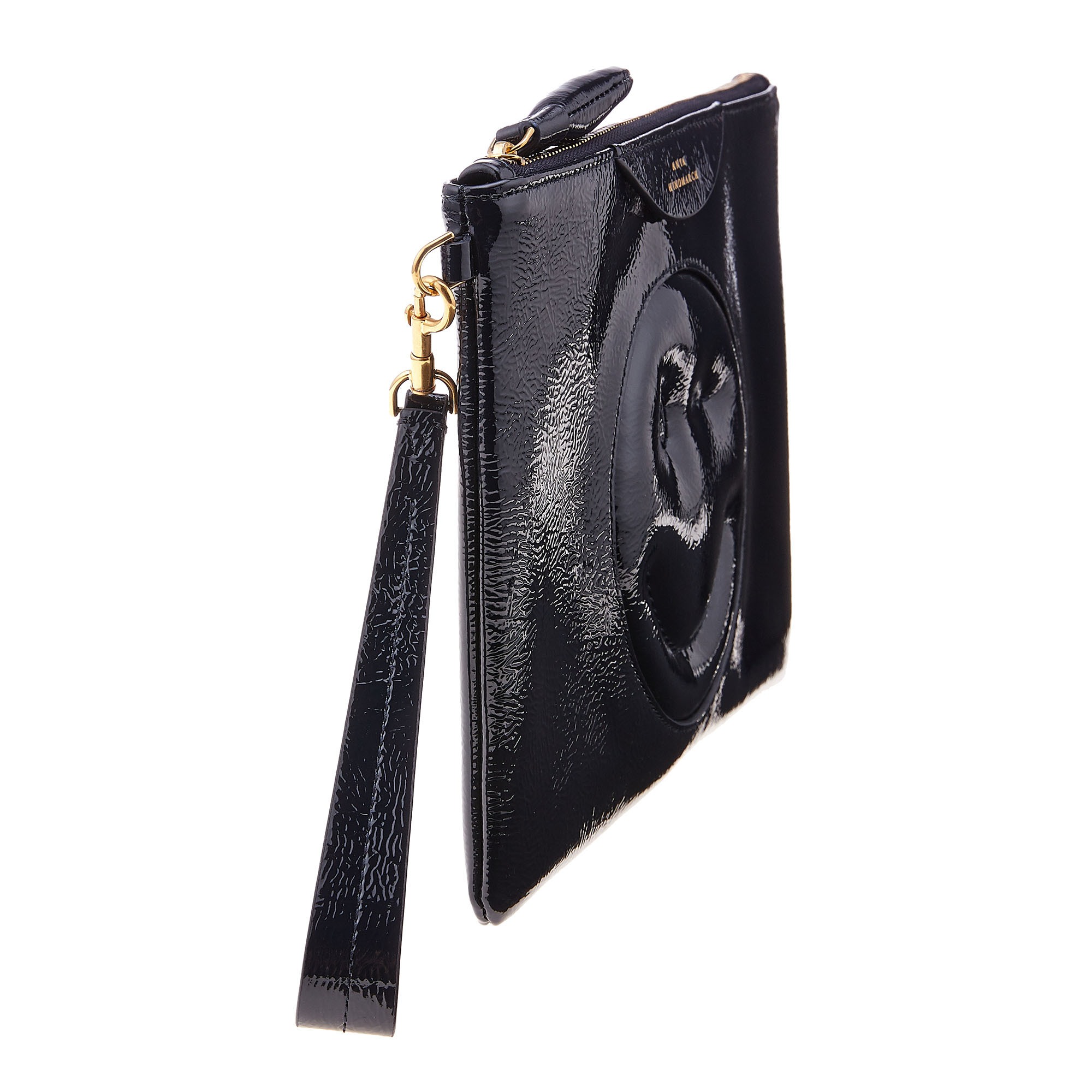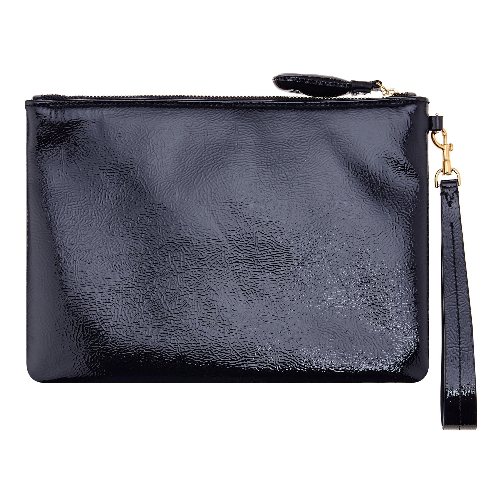 디자인 포인트:처비 윙크 디테일이 돋보이는 위트있는 무드의 집 탑 파우치광택감이 느껴지는 천연 가죽 소재 자체로 포인트가 되는 디자인탈부착 가능한 손목 스트랩 디테일로 실용성을 더한 아이템