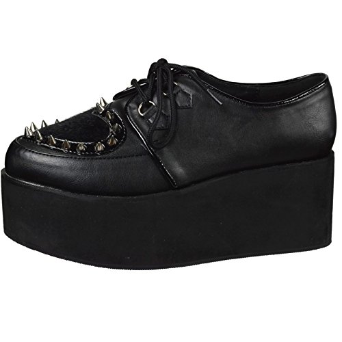 Binding : Apparel Product Description Alternative, defiant, and nonconforming enthusiasts need look no further than Demonia for the most cutting-edge, beyond-the-ordinary line of footwear. Its original meaning and connotation of demonic diva is by no means gender exclusive. Demonia not only reflects the alternative lifedesign, it defines it. This Grip 02 Platform Oxford feature platform, fury heart cutout design, D-ring lace, pointed studs and piping detail. Platform height: 2 3/4' (7cm). Material: Vegan Leather, Faux Fur. 0