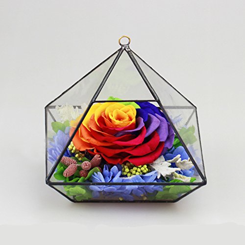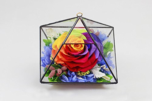 DeFancy Preserved Fresh Flower House Best Gift for Valentine's Day Mother's Day Anniversary Day (Rainbow)