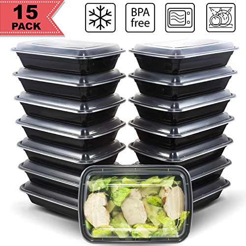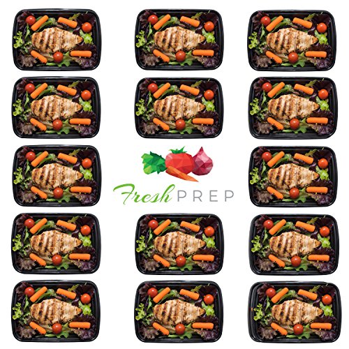 [15 Pack] FreshPREP Meal Prep Containers - BPA Free, Microwave, Dishwasher & Freezer Safe Stackable Portion Control Container for Food Prep – Food Storage Fitness Meal Containers - 1 Compartment--32oz