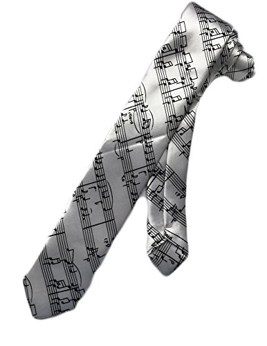 Product DescriptionSkinny necktie depicts a pattern of diagonal music scores on top of a white background0