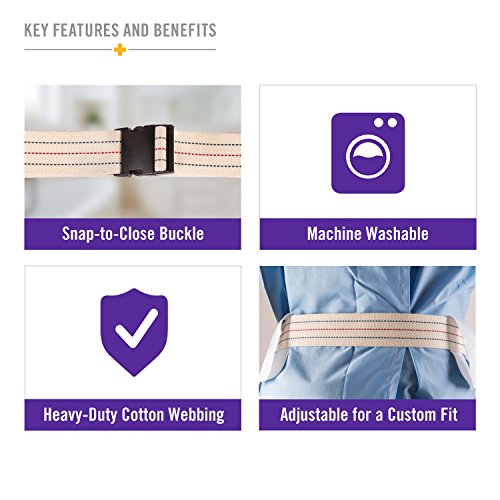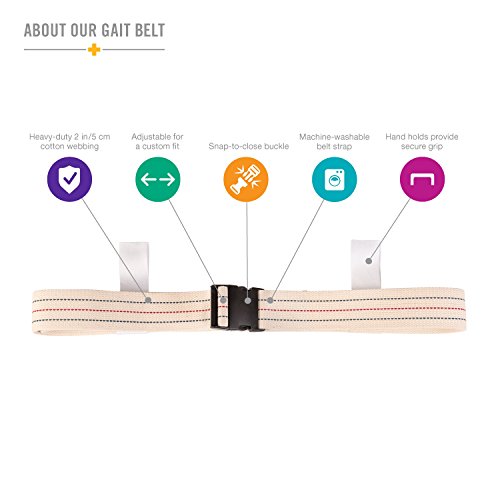 DMI Cotton Patient Ambulation Gait Belt This cotton gait belt makes it easier on your back when you move patients from place to place. And it’s adjustable for a custom fit. The convenient hand holds on each side help you to get a good grip in order to more safely and easily move the person. The handy snap-to-close buckle makes it simple to snap shut. To use: place the belt around the person’s waist over their clothing with the hand holds on each side. Snap the buckle closed. You’re ready to move the person. What is a Gait Belt? A gait belt is a safety device used to help someone move, such as from a bed to a chair. The belt is also used to help hold someone up while he walks, if he is too weak to walk on his own. The gait belt helps you provide support and helps prevent a fall. It also decreases your risk for a back injury while you help the person move or walk. (Source: Drugs.com) Features - This cotton gait belt makes it easier and safer to hold patients up while they walk or move them from place to place: wheelchair to bed, car, bath chair, commode, etc.?