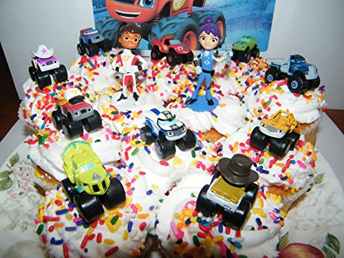 Nickelodeon Blaze and the Monster Machines Deluxe Mini Cake Toppers Cupcake Decorations Set of 13 Figures with Blaze, JR, Gabby, 9 other Monster Machines and More!