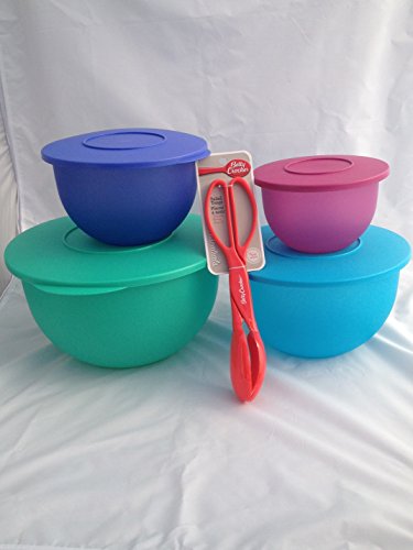 Tupperware Impressions Serving Mixing Storage Bowl Set 4 pc with Betty Crocker Serving Tongs Bundle