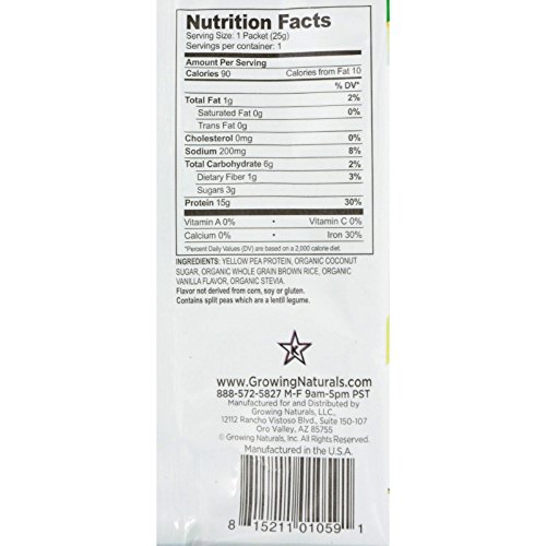 -. Binding : Health and Beauty -. Brand : Growing Naturals -. EAN : 6220171989469 -. Feature : Vendor: Growing Naturals / Item: Growing Naturals Pea Protein Powder - Vanilla Blast Single Serve Packet - .9 oz - Case of 12 / Item UPC No: 815211010591 -. Label : U-Nutra -. LegalDisclaimer : PLEASE NOTE: Product image is representative of the product offered but may not have the exact attributes. Please read product description for the specific attributes of this product. The information above is intended for reference only. While we attempt to keep our information accurate, we cannot guarantee it is an accurate representation of the latest formulation of the product. If you have any concerns, please visit the vendor's web site. The information above are the views of the product's manufacturer. These statements have not been evaluated by the Food and Drug Administration. This product is not intended to diagnose, treat, cure or prevent any disease. -. Manufacturer : U-Nutra -. MPN : 1527001 -. PartNumber : 1527001 -. ProductGroup : Health and Beauty -. ProductTypeName : HEALTH_PERSONAL_CARE -. Publisher : U-Nutra -. Studio : U-Nutra -. Title : Growing Naturals Pea Protein Powder - Vanilla Blast Single Serve Packet - .9 oz - Case of 12