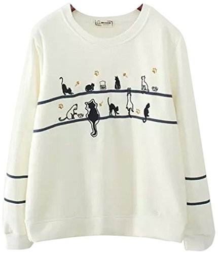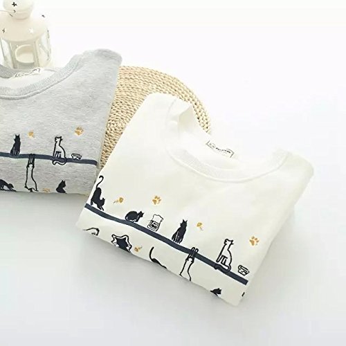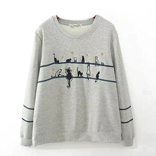 소와 공예사 삼걸계 레이디스 캐주얼 트레이너 긴 소매 귀여운묘 라운드 넥 트레이너 패션 넉넉하게 무지 심플 파커 추동