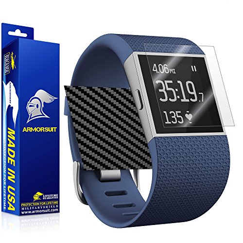ArmorSuit MilitaryShield - Fitbit Surge Fitness Superwatch Screen Protector (Full Screen Coverage) + Black Carbon Fiber Full Body Skin Protector / Front Anti-Bubble and Extream Clarity HD Shield with Lifetime Replacements
