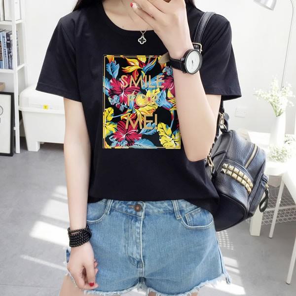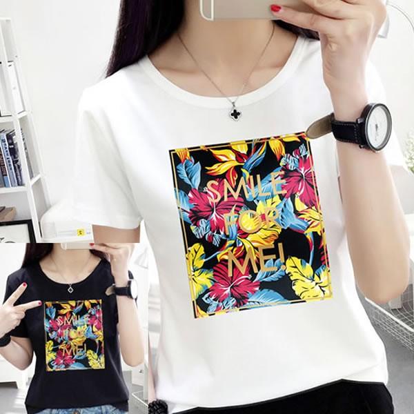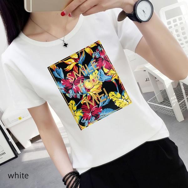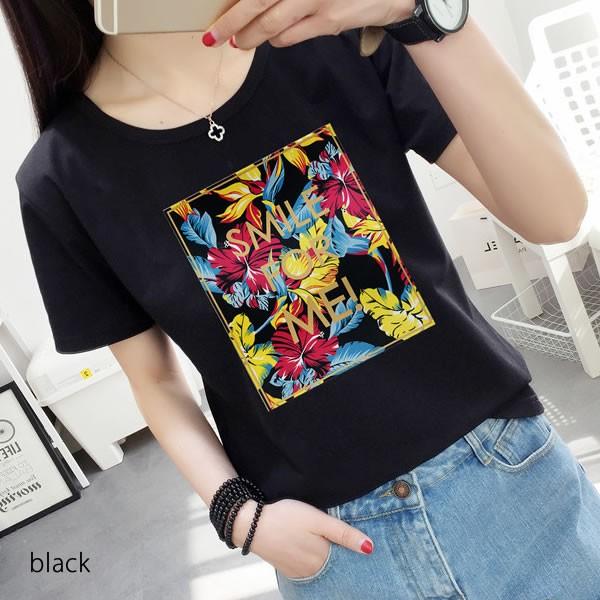 | flower smile プリント Tシャツ トップス 半袖 黒 白 無地 【tシャツ レディース 女性 ブラック black white ホワイト 派手 カワイイ トップス 無地 半袖 春夏 きれいめ インパクト ブラック ホワイト】 | |