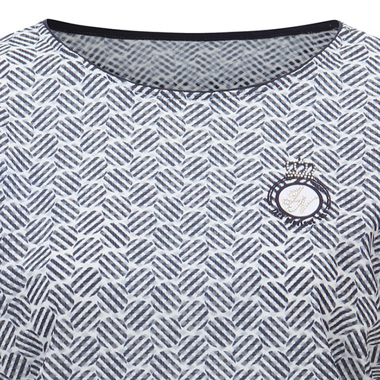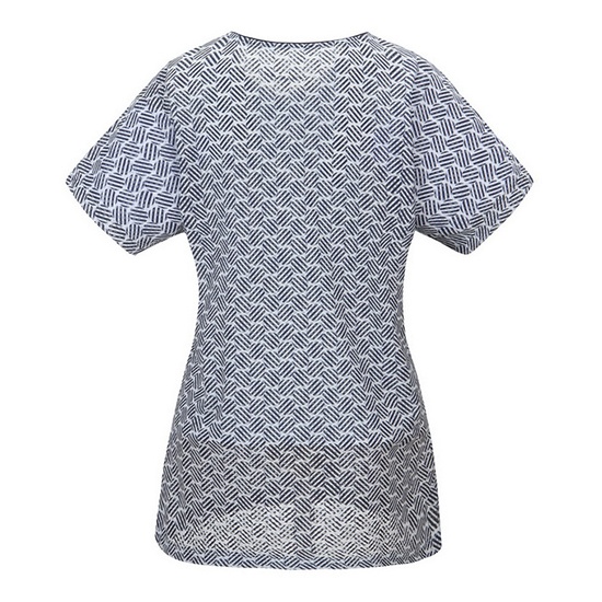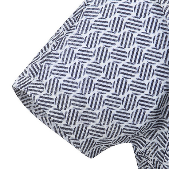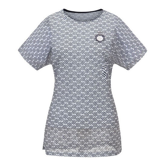 - 톤온톤 써클 나염 디자인으로 멋스러운 여성 티셔츠.