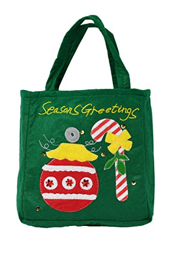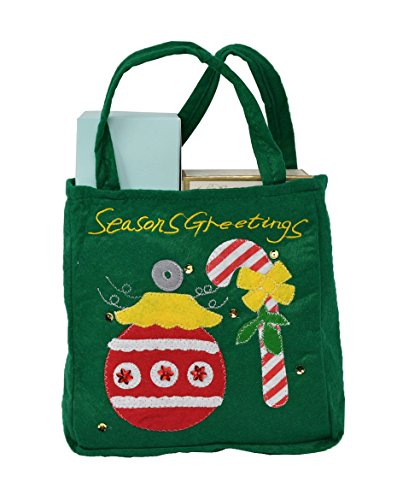 Christmas Tote Bag, Season's Greetings Reusable Holiday Gift Bag. Green Bag with Ornament and Candy Cane - by Home-X