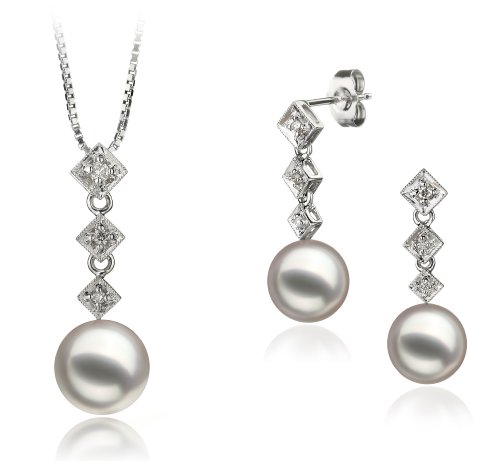 -. Title : Rozene White 8-9mm AAA Quality Japanese Akoya 14K White Gold Pearl Set