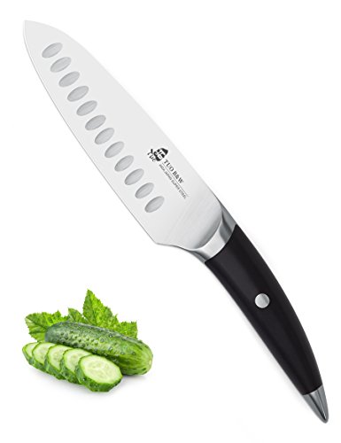 TUO CUTLERY SANTOKU KNIFE 440 JAPANESE SUPER HIGH CARBON STAINLESS STEEL -BLACK HANDLE, 6-INCH