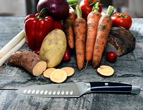 • 6-Inch santoku knife by TUO; santoku refers to the?three cutting tasks which the knife performs well: slicing,?dicing, and?mincing.