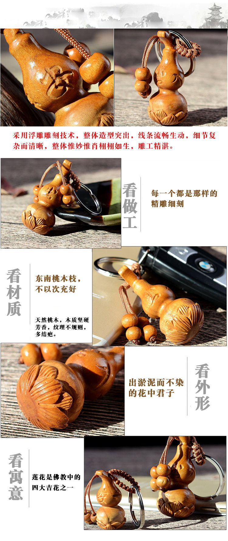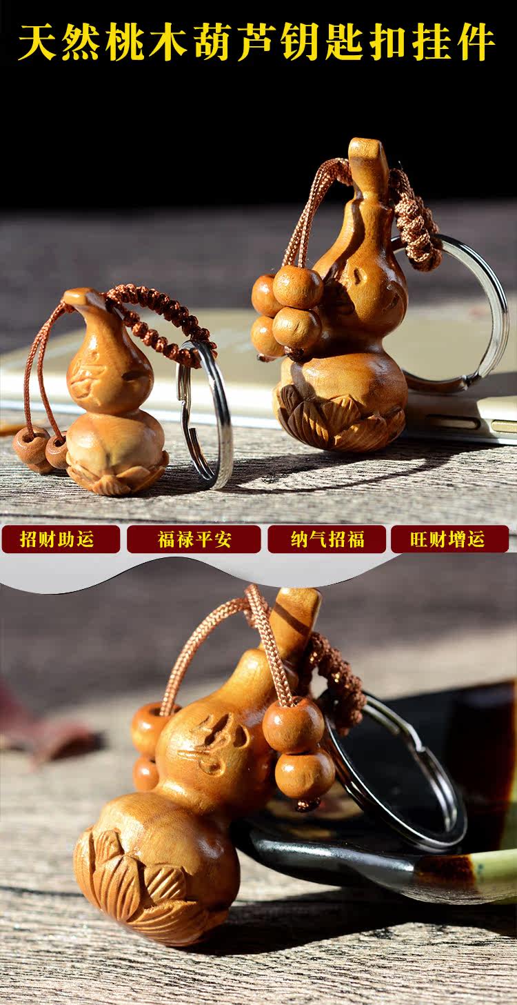 开运泰山桃木葫芦莲花钥匙扣护身转运保平安汽车钥匙扣挂件