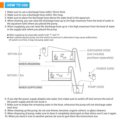TERAPUMP Electric Fish Tank Aquarium Cleaning Submersible Water Pump with 10 feet hose