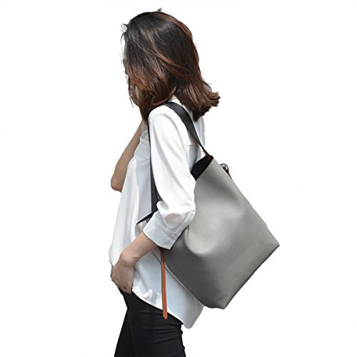-. Feature : Dimension(LxHxW): 9.8"X3.7"X12.2"/25X9.5X31CM (Fit up to 11" laptop), UNADJUSTABLE shoulder drop: 9.6"/24.5CM, shoulder width: 1.8"/4.5CM. Net weight: 0.68kg/1.5 pounds. / High Quality Material: We use 100% split cow leather for this handbag. It is durable and waterproof. / Color Blocking: Four types of contrasting color - wine red contrast black, grey contrast white, light green contrast black, olive green contrast white. Color Blocking makes this bag more modern, and highlights your personality. / Internal Structure: Gold-tone magnetic buckle for Closure. Internal with 1 generous main pocket fit a 11" laptop, and there is a removable pouch for the IPAD, phone, makeup, wallet, etc. / Suitable: Soft Leather, fashion texture, simple styling. You could use it as a Handbag, a Tote Bag, or a Shoulder Bag. Perfect for using in office, school, travel or any other daily occasions.