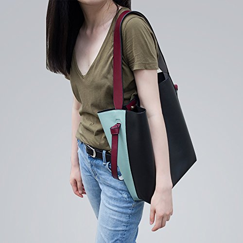-. Title : S-ZONE Women's Contrast Color Leather Tote Shoulder Bag Handbags