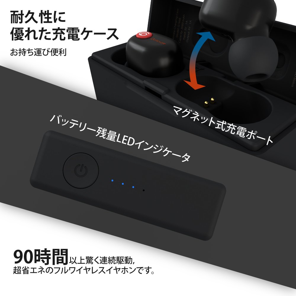 【超长時間使用】1度の充電で最大3.5時間の音楽再生ができます。また、付属のコンパクトな充電ケースを合わせて使用することで最大90時間以上使用することが可能です。充電ケースを1度の充電、一ヶ月ほど充電不要、超省エネのフルワイヤレスイヤホンです。またGemini+はバッテリー容量の表示機能を備えています。