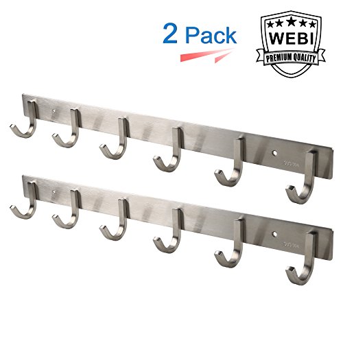 - 3. Widely-Application: WEBI coat hooks are perfect for hanging frying pan, robes, jeans, heavy coats, wet towels, work shirts, pants, scarves/gloves, mugs, dog toys, dog leash, Electronic equipment and they even can hold mops, brooms, dusters, etc to keep them off the floor. It is also applied to school and keep backpack, ect.