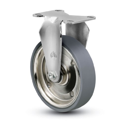 Jarvis 30 Series 5" Diameter Welded Disc/Gray Rubber Wheel Rigid Plate Caster with Ball Bearing, 3-5/8" Length X 2-3/8" Width Plate, 200 lbs Capacity