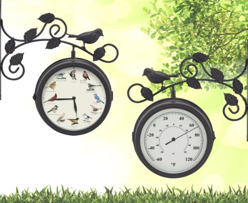 - Feature : Authentic Bird Sounds heard on the hour / The durable, weather-resistant, contemporary design will make this a long-lasting accent piece / The beautiful clock dial features twelve of the most recognized North American Song Birds / A coil-driven thermometer accurately measures temperature in both Fahrenheit and Centigrade scales