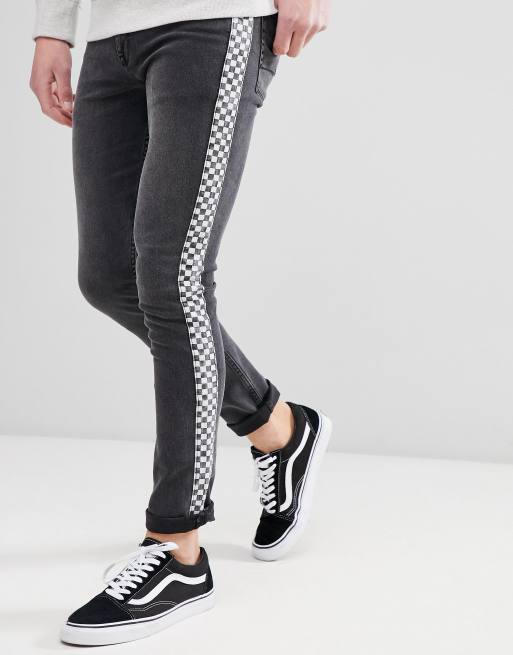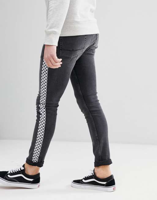 ASOS DESIGN Super Skinny Jeans In Washed Black With Checkerboard Stripe