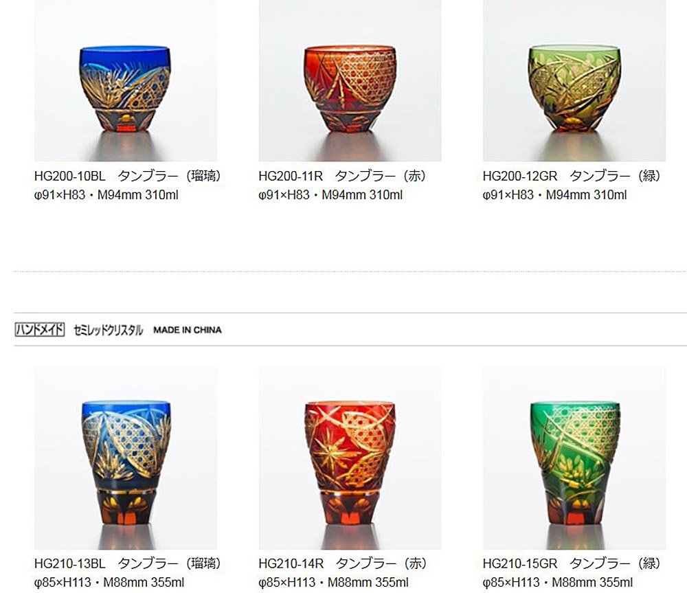 Ayaka cut glass tumbler (red) 355ml HG210-14R