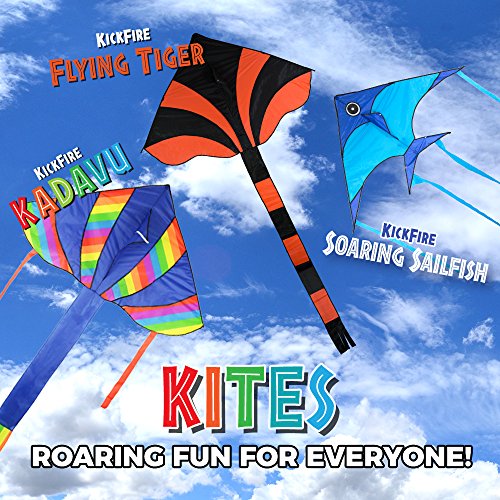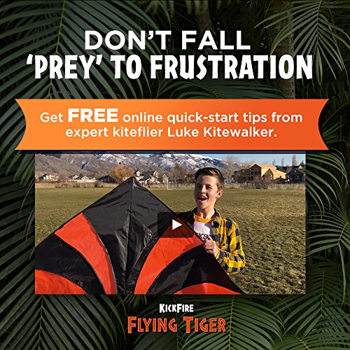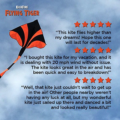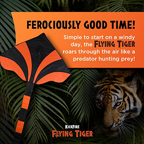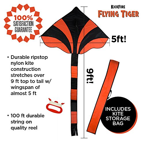 KickFire Flying Tiger Premium Delta Kite | Best Kite for Kids | Easy to Fly | Large High Flyer Kites | Ripstop Nylon Fabric | Includes 100 FT Kite String, Plastic Reel & Kite Bag