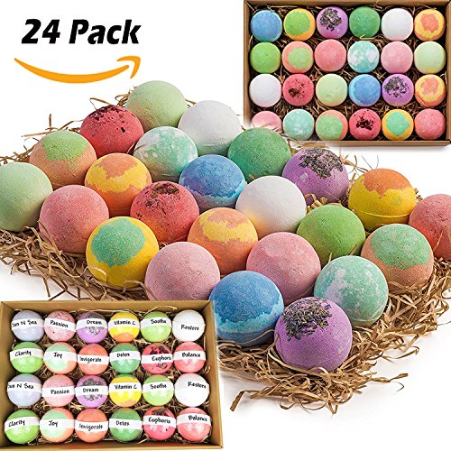 Bath Bomb Gift Set of 24 HUGE Bath Bombs - Gift your loved ones with this elegant value pack of 24 bath bombs. This set includes a fragrance for every mood! Best holiday gift for Christmas, Mother's Day, Birthday, or "just because". Natural Bath Bombs are the ideal gifts for kids. Nurture Me Lush Bath Bombs makes the best bath bombs for kids & adults!