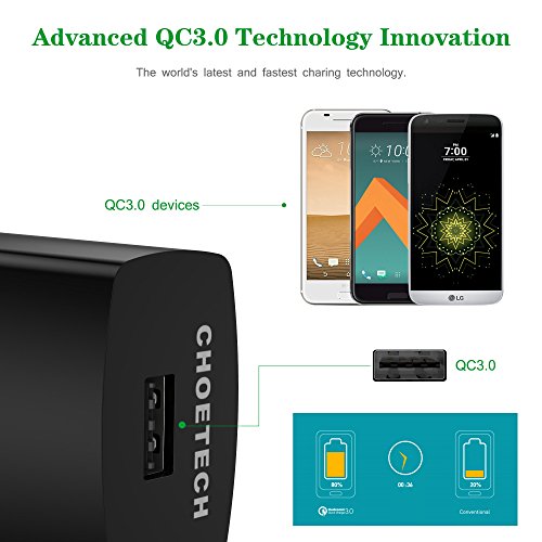 CHOETECH USB Wall Charger with Quick Charge 3.0 (USB C Cable Included) for Galaxy S8, S8 Plus, LG G6, G5, HTC 10, Samsung, iPhone, iPad and more