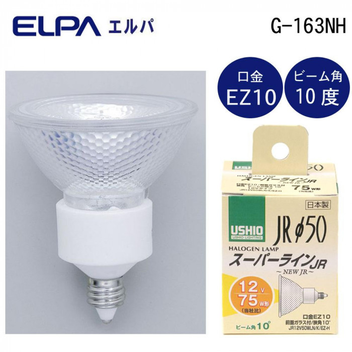 | 仕様 | 口金:EZ10 電圧:12V 消費電力:50W 寿命:約4000時間 ビーム角:狭角10度 前面ガラス付 |