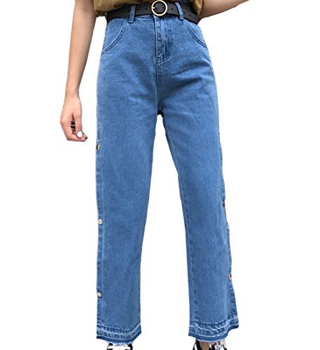 -. Feature : メイン素材:コットン ポリエステル / カラー:ブルー / サイズ(cm):S M L S ウェスト 66 ヒップ 90 パンツ丈 93  M ウェスト 70 ヒップ 94 パンツ丈 94 L ウェスト 74 ヒップ 98 パンツ丈 95 / ハイウエストのデザインはいい体つきをはっきりあらわれます。 / 脛の側でスリットのデザインは新しいファション感を増えます。