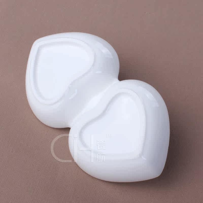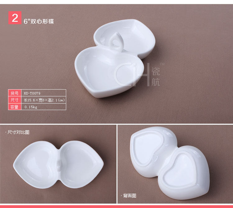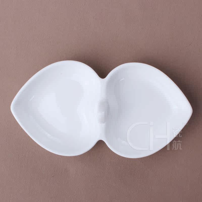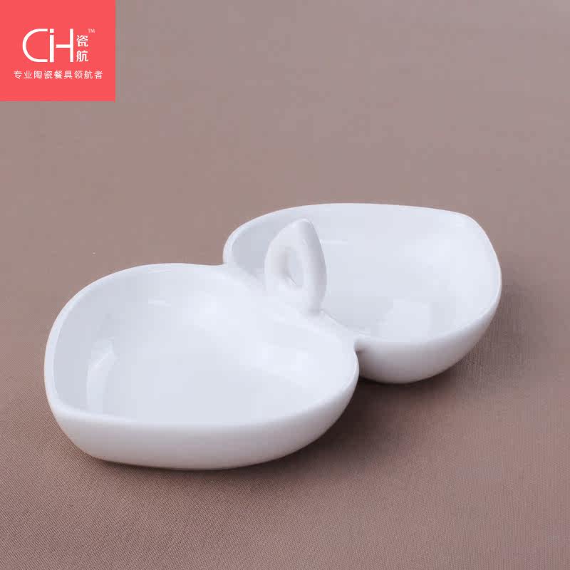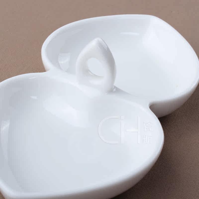 瓷航6寸双心形碟骨瓷双格碟子酱料碟子陶瓷纯白桃心碟创意凉菜碟