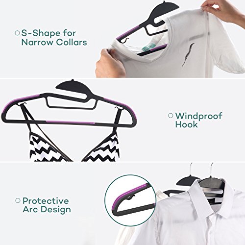 The Perfect Hanger: All 60 hangers come with a non slip coating, S-shape for tights collars, a windproof hook for safe outdoors use, and special slits for ties and scarves