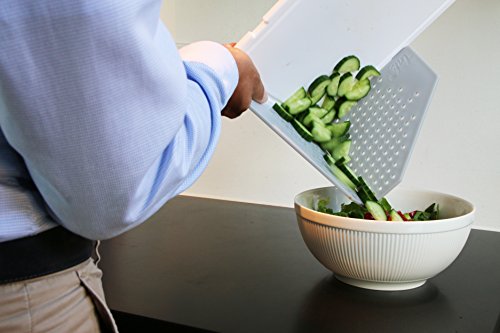 Food can be easily be rinsed before or after cutting and can be slided into a bowl easily