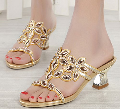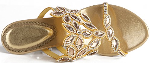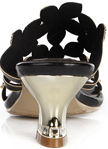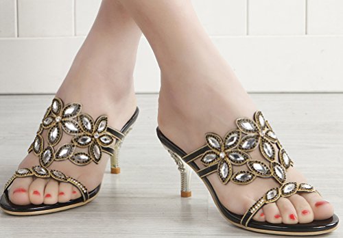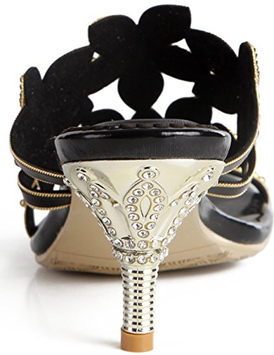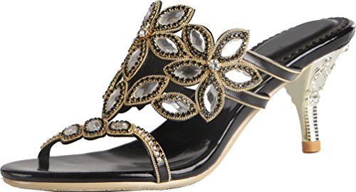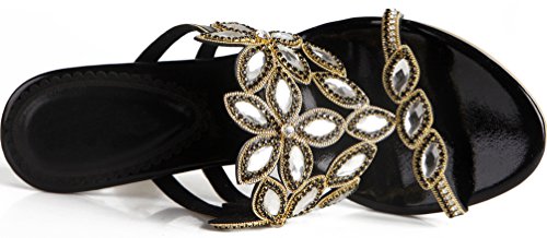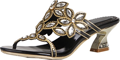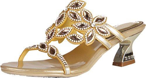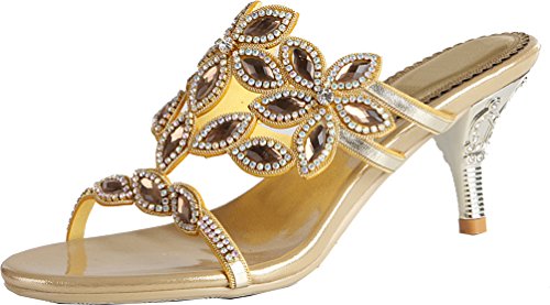 | (Abby)/Women's/Athletic Outdoor/DIRECT FROM USA/Abby GST034 Womens Comfort Fashion Wedding Party Heeled Rhinestone Leather Slippers |