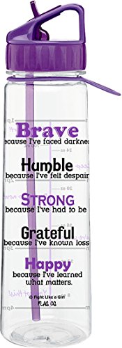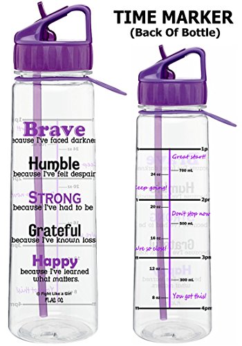 Life has had its bumps, but you've found the good in all of your struggles. Stay reminded of the strength and courage you've gained while keeping healthy on the go with our inspirational "SlimKim" II Water / Sports Bottle featuring a slim, trendy design, the empowering "Brave" text on one side and a handy time marker with encouraging phrases and measurement marks on the other side to help you stay on track with your water intake goals during the day. A screw-on lid with flip-up drinking spout with attached straw and a convenient carrying strap make this bpa-free bottle even more amazing. Makes a perfect Christmas or birthday gift idea!