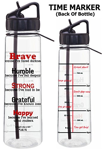 Features Handy "Time Tracker" with inspiring phrases and "Measurement Marks" in both ounces and ml to Help You Stay On Track With Your Water Intake Goals During the Day / PLEASE NOTE THAT OZ/ML MEASUREMENTS MAY NOT BE EXACT DUE TO VARIANCES IN PRINT RUNS