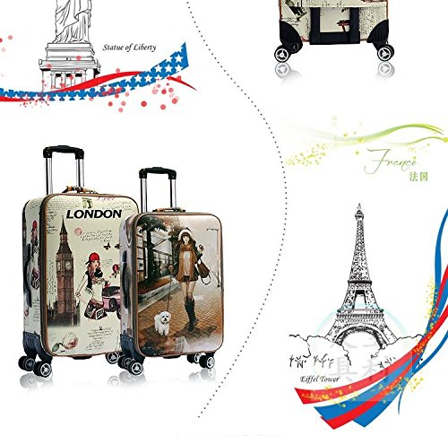 -. Brand : DPIST -. Feature : 20"-Height x Length x Width: 18.9"x13"x7.5"(48x33x19cm) / 22"-Height x Length x Width: 21.7in x 14.6in x 9.4in (55x37x24cm) / 24"-Height x Length x Width: 23.6in x 15.7in x 9.8in (60x40x25cm) / Material:PU / Less Noise Urethane Wheel System -. ProductGroup : Apparel -. ProductTypeName : LAGE -. Title : DPIST® London Girl Vintage & Retro Style Carry-On Trolley Lage and Cosmetic Tote Bag Set