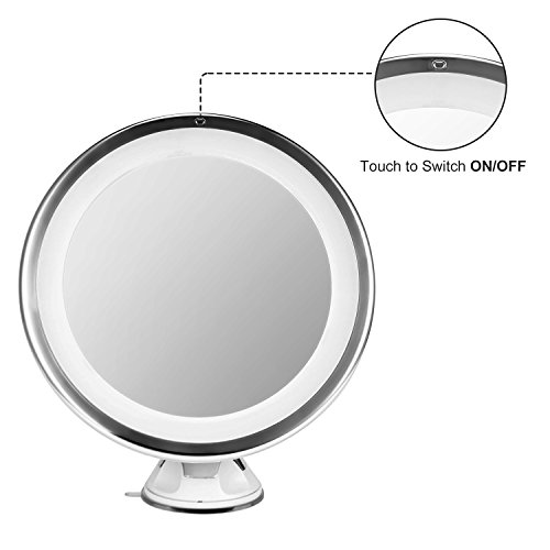OAK LEAF 7X MAGNIFICATION LED LIGHTED MAKEUP MIRROR,BRIGHT SHAVING BATHROOM VANITY MIRROR WITH STRONG SUCTION CUP,TOUCH-ACTIVATED,ROTATES 360 DEGREES,DAYLIGHT COLOR,BATTERY OPERATED