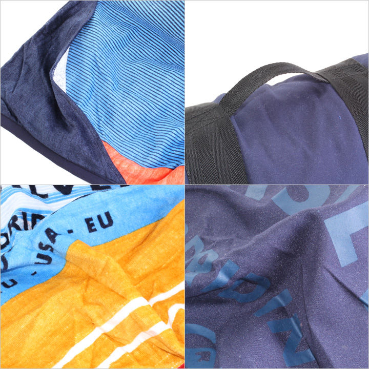 コンパクトに丸めて持ち運びできるサーフタオルです。大人二人が寝ても余裕がある程の大判で、ビーチに広げて使えるサイズです。内側はパターンプリントで明るい印象。端にはポケットが配置されていて、収納にも活躍してくれます。