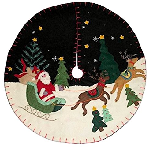 Handmade Felt Christmas Tree Skirt, Santa, Sleigh, & Reindeer, 9" Wide