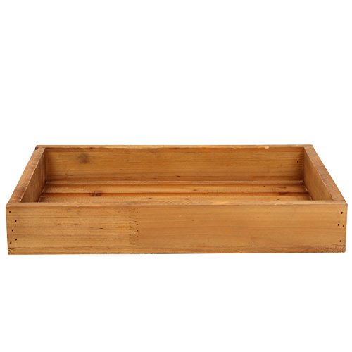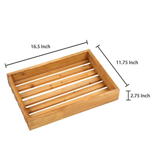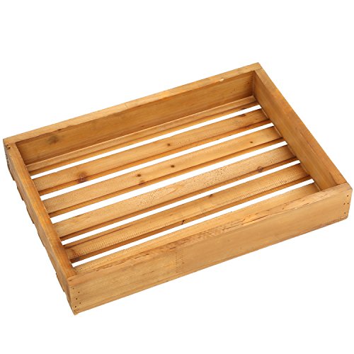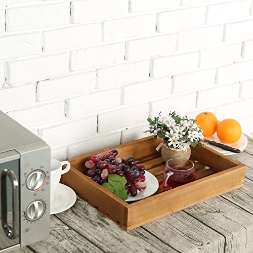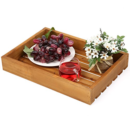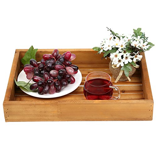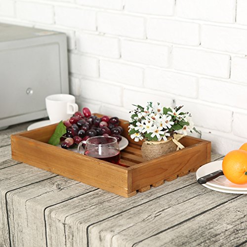 Country Rustic Style Natural Brown Wood Slat Breakfast Serving Tray, Rectangular Display Stand