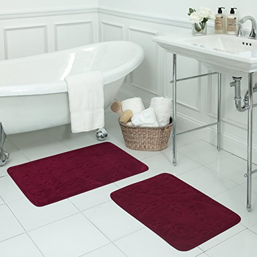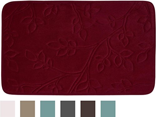 Bounce Comfort Spring Leaves Micro Plush Memory Foam Bath Mat with BounceComfort Technology, 20 x 30 in. Barn Red