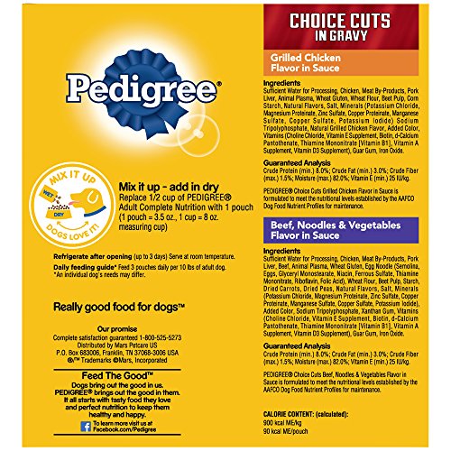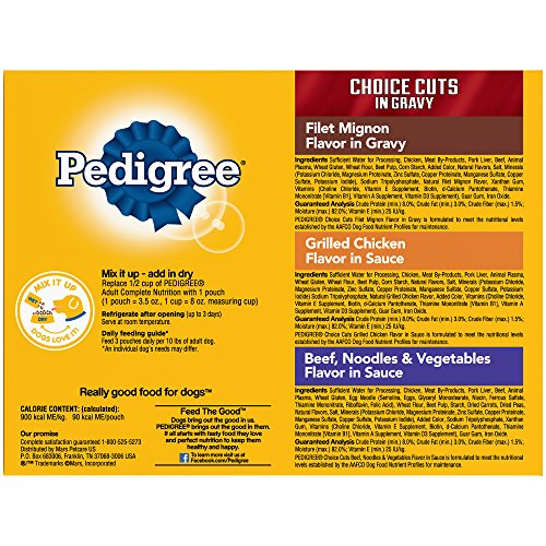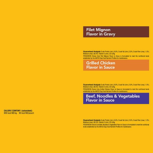PEDIGREE CHOICE CUTS Variety Pack: (6) Filet Mignon; (6) Grilled Chicken; (6) Beef Noodles and Vegetables Choice Cuts Offers Complete Nutrition in a Balanced Dog Food